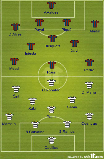 As for Sahin, is a central midfielder, or an attacking one? Is he experienced enough and mentally strong enough to limit Iniesta's impact on a game? Also, Coentrao at Right Back? So you have Di Maria and Coentrao on the right hand side? Two left footers on the right hand side? Where's the width gonna come from from that side, since both will have to cut inside to get onto their best foot? Who will put in crosses for Ronaldo from that side, since that will be his best bet from scoring alone up front?